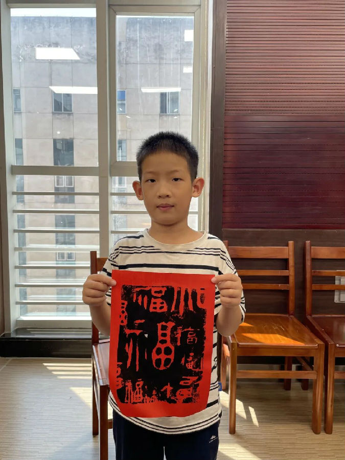 轮到自己动手时,孩子们瞬间切换成认真“小工匠”:有的小心翼翼地刷墨,有的专注地调整纸张位置,有的跟着老师的节奏慢慢捶拓。当一幅幅生动的图案从石碑上“跃” 到纸上,孩子们的脸上都绽放出惊喜的笑容。“这是我亲手做的!”他们小心翼翼地捧着自己的拓印作品,仿佛捧着一份沉甸甸的文化礼物,这份独特的纪念,也让千年非遗技艺在孩子们心中种下了传承的种子。
