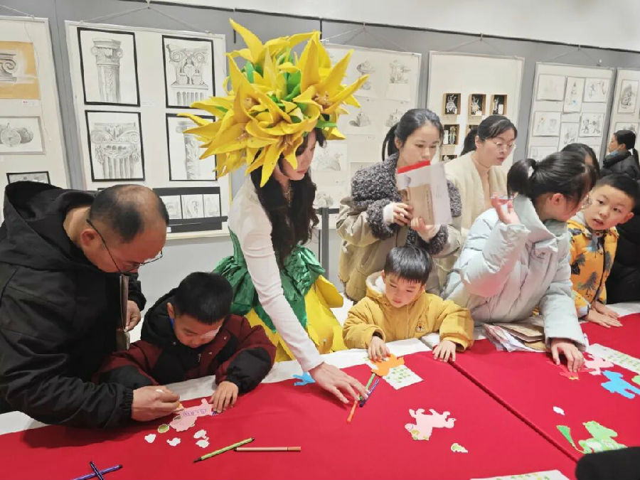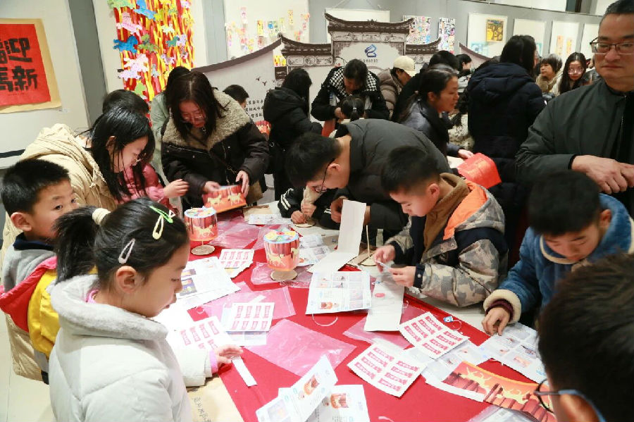一针一线凝匠心,一举一动悟传承。书院薪传区里,亲子搭档成了主角,大家一同耐心缝制线装新年记事本,巧手拼装成语走马灯。在慢下来的手作时光里,孩子们体会到“敬惜字纸”的深意,家长与孩子也在协作中感受传统文化的温暖,读懂匠心传承的重量。