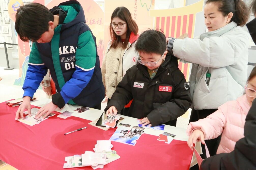 “我破译出来了!”红色热土区的惊喜欢呼声此起彼伏。特制笔刷轻扫,红色标语便“神奇显影”;齐心协力配合,历史画面拼图逐渐完整。原本遥远的抚州本土红色故事,在趣味互动游戏中变得可触可感、鲜活生动,红色记忆也在潜移默化中深植于每一位参与者心中。