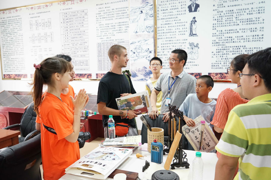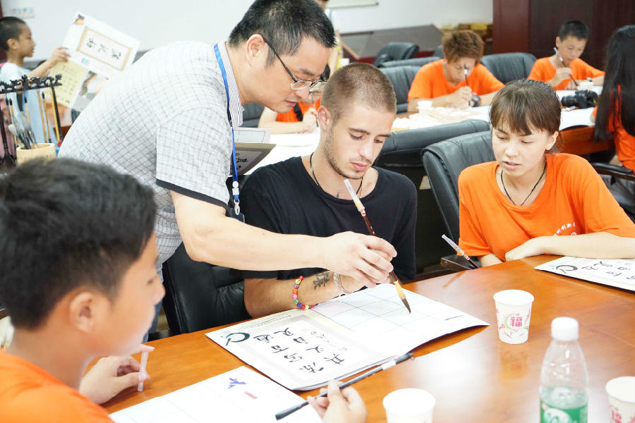 活动中,两地15名青年志愿者、广州4名分别来自意、美、日、俄的留学生以及我市7名留守儿童参观了市图书馆并开展了书法交流活动。市图书馆特藏部主任、市书法家协会常务理事吴乐新为大家上了一堂生动的书法理论与实践课,激起了青年们的浓厚兴趣,引发了热烈的讨论。来自意大利的留学生Leonardo表示,图书馆的环境很优美,吴老师的授课很精彩,这次的书法课令他更加喜爱中国文化,希望自己能学到更多中国文化知识,为传播博大精深的中华传统文化贡献力量。