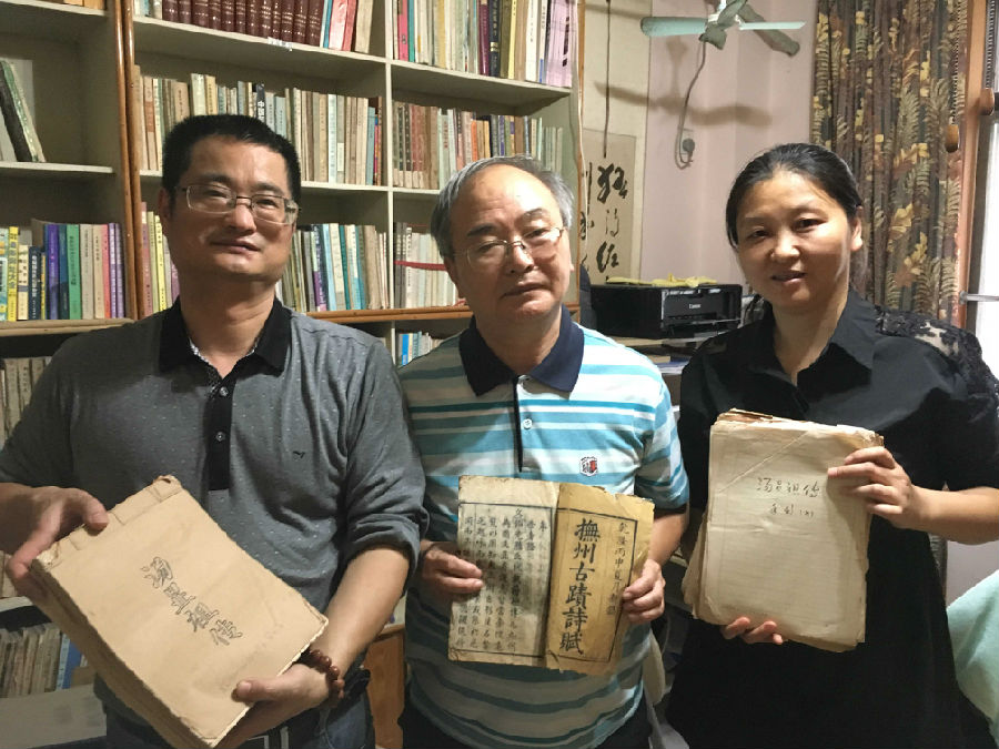 此次捐书以戏曲研究方面书籍为主,创造了我馆接受个人捐赠图书记录,其中包括《汤显祖传》《汤显祖大传》两种图书的珍贵手稿,以及乾隆丙申夏友筠堂刻板《抚州古迹诗赋》珍稀古籍。厚厚几大本的《汤显祖传》手稿全部用水笔填写,字迹工整清晰,历经30多年仍然保存完好;《抚州古迹诗赋》对抚州文史有重要研究价值,该书目前在全国只有两本,另一本由南京大学图书馆馆藏。对此,龚老师表示,“只有把这些书籍捐在图书馆,才是最好的去处,可以方便更多的人学习研究”。