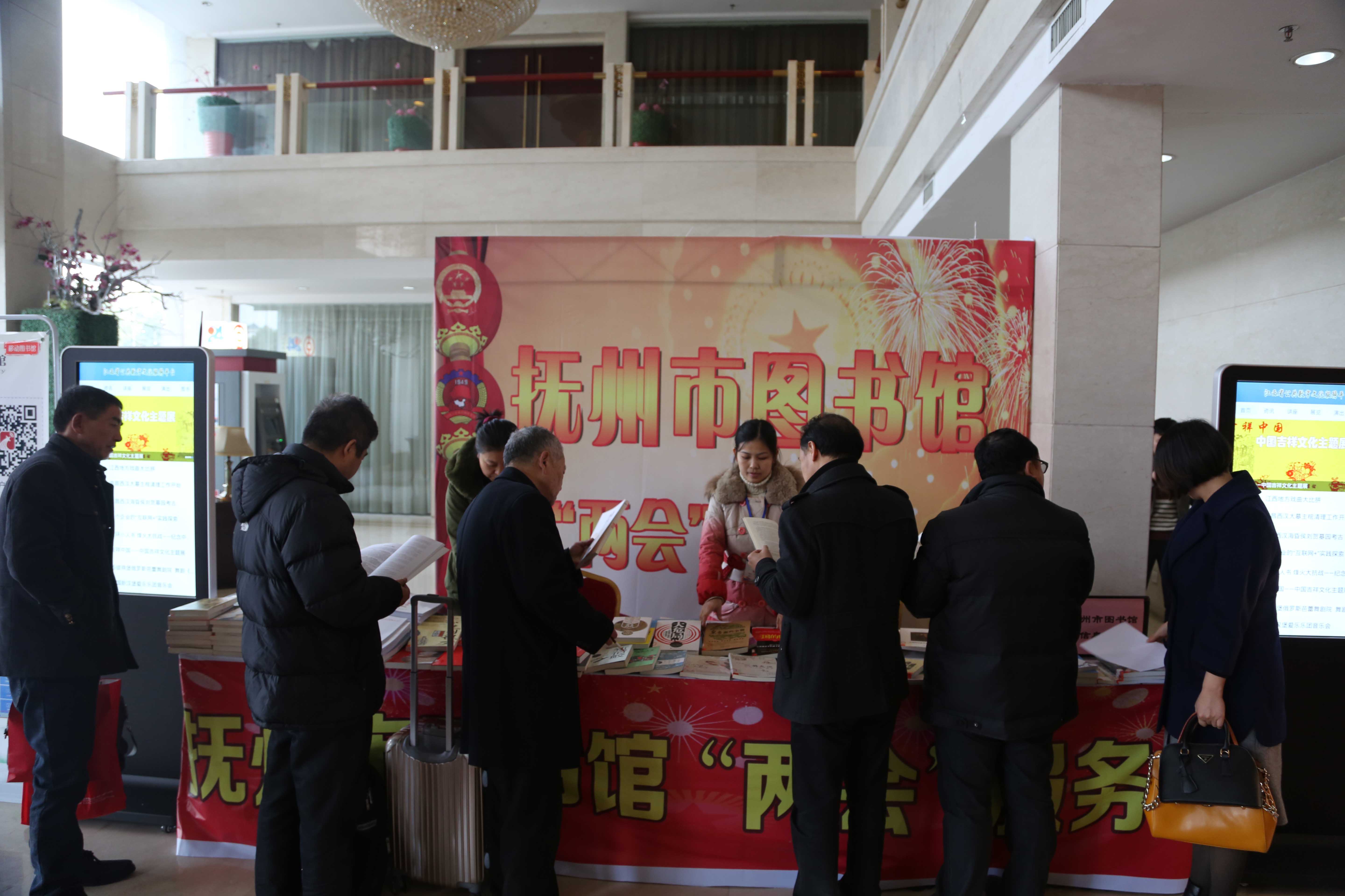 为了向“两会”代表、委员提供更加便捷的服务,我馆在其下榻酒店设立“两会”服务点,时间从早八点至晚八点,十二小时不间断。现场提供200种图书借阅,以及办证,文献资源检索,解答代表、委员委托的定题咨询等服务。同时,为进一步提高信息服务水平,推广数字阅读,我们在两处服务点各设立了2台电子书借阅机(资源推送器),内含3000册独家授权的电子图书及“两会视点:大众创业、万众创新”专题资料,供代表、委员免费下载、查阅。