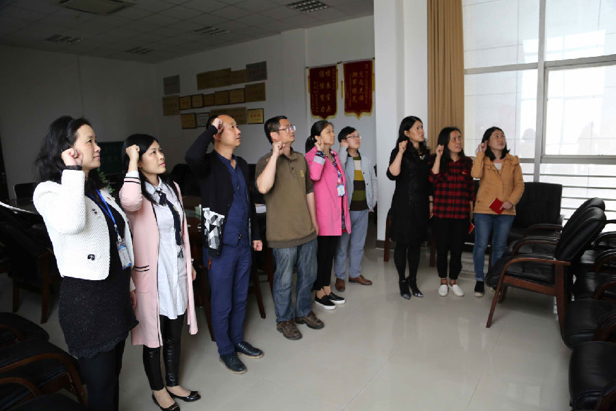 2、为陈蕾、罗芳同志过政治生日,重温了入党誓词、回顾了入党历程、支部书记孔彬同志对她们谈话寄语、并且赠送了党章,全体党员帮助她们过政治生日。
