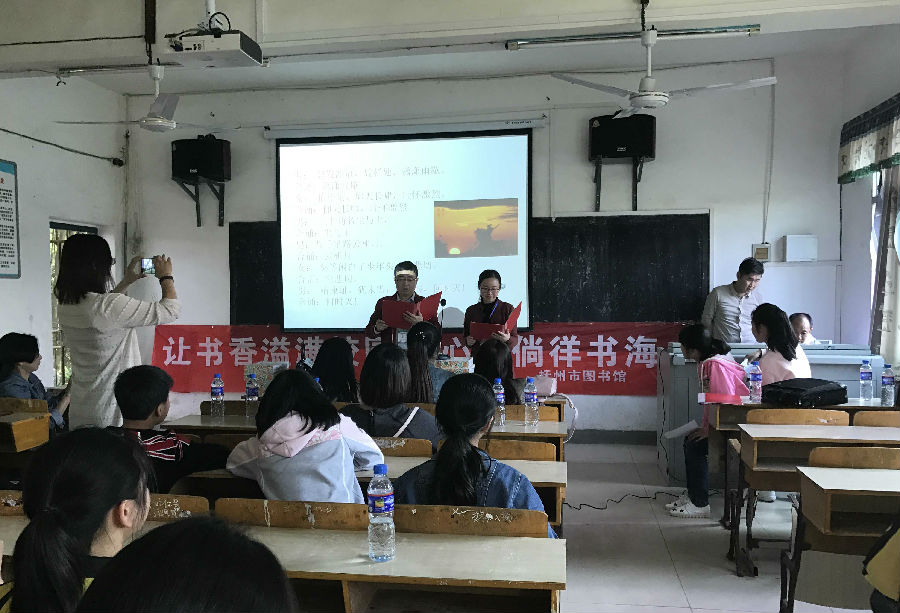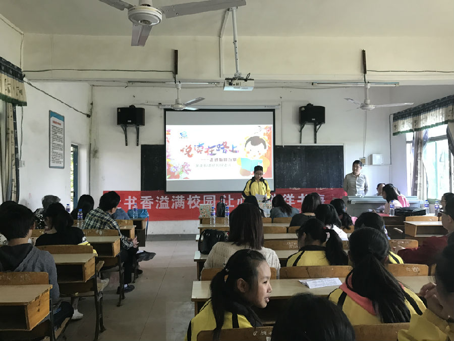 为进一步推进全民阅读,拓展全民参与“悦”读的广度和深度,加快书香校园的建设,2017年4月28日下午,抚州市图书馆围绕“悦读在路上----书香校园,逐梦前行”的主题,在临川五中开展了“悦读,在路上”美文共读活动。活动结束后,我馆工作人员还向同学们散发了“全民阅读活动倡议书”,号召大家践行每天读一小时,形成“多读书,读好书,好读书”的校园风气。最后,为临川五中分馆替换书籍,我们希望借助这一活动,让更多的师生感受到诗文诵读的独特魅力,让经典滋润心田,让书声回荡校园。