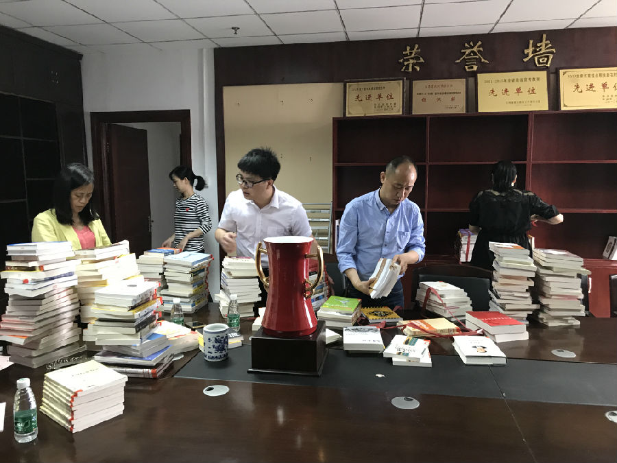 本次图书配送活动我馆精选了包括党史资料、文学历史、现代科技等方面书籍,在图书馆孔馆长的带领下,我馆工作人员和政法委同志们一起将这批图书分类摆放在了新设的市政法委图书阅览室,并根据图书的种类设计了书架书签以方便读者阅读,同时帮助阅览室工作人员做好了借阅登记,受到了政法委同志的热烈欢迎。后续将开展图书定期轮换更新工作。