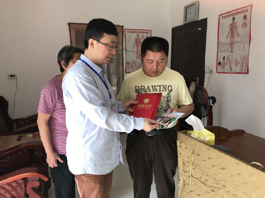 日前,由中国盲文图书馆组织的“书香承载梦想,阅读点亮人生”——全国优秀盲人读者评选活动获奖读者揭晓,由我馆推荐的抚州籍盲人周亮根、王华获得殊荣。为了将这个好消息尽快告知他们,5月16日上午,市图书馆特意组织工作人员上门,将荣誉证书和活动照片送到他们手中。