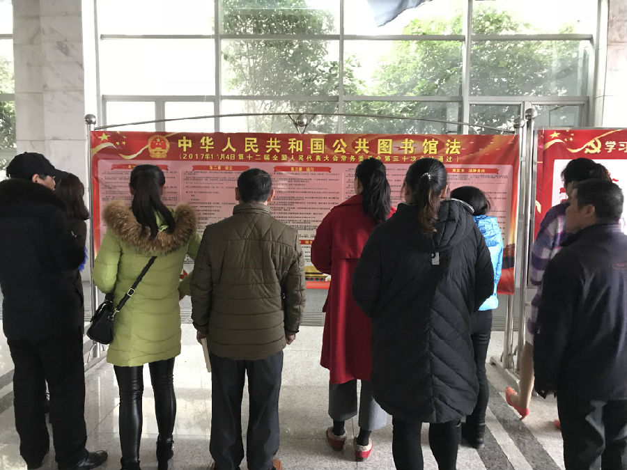 《公共图书馆法》作为党的十九大之后出台的第一部文化方面的法律,也是公共文化领域继《公共文化服务保障法》之后的又一部重要法律,是全面推进依法治国、加快文化立法的重大突破,也是推进全面深化改革、提高文化治理体系和治理能力现代化的重要法律依据,为推动公共图书馆事业发展提供了基本遵循,具有十分重要的意义。为学习、宣传、贯彻好《公共图书馆法》,让广大读者和市民深入细致地了解法律内容,自《公共图书馆法》颁布之日起,我馆结合实际,开展了形式多样的普法学习宣传活动。