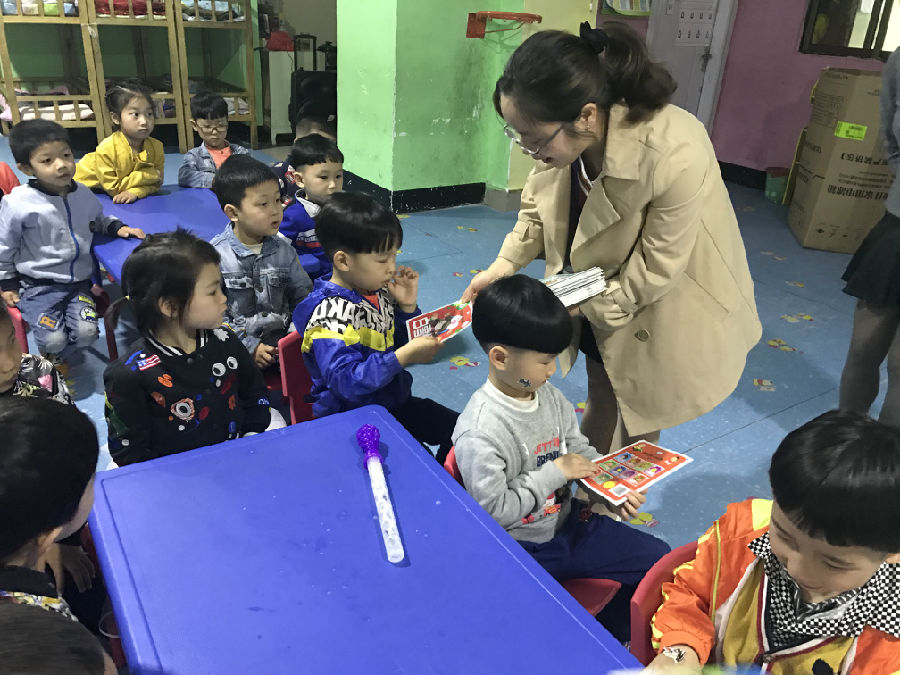 绘本阅读结束后,小徐老师代表市图书馆赠送给小朋友们“4.23”世界读书日精美图书礼品,希望小朋友热爱读书,天天读好书!