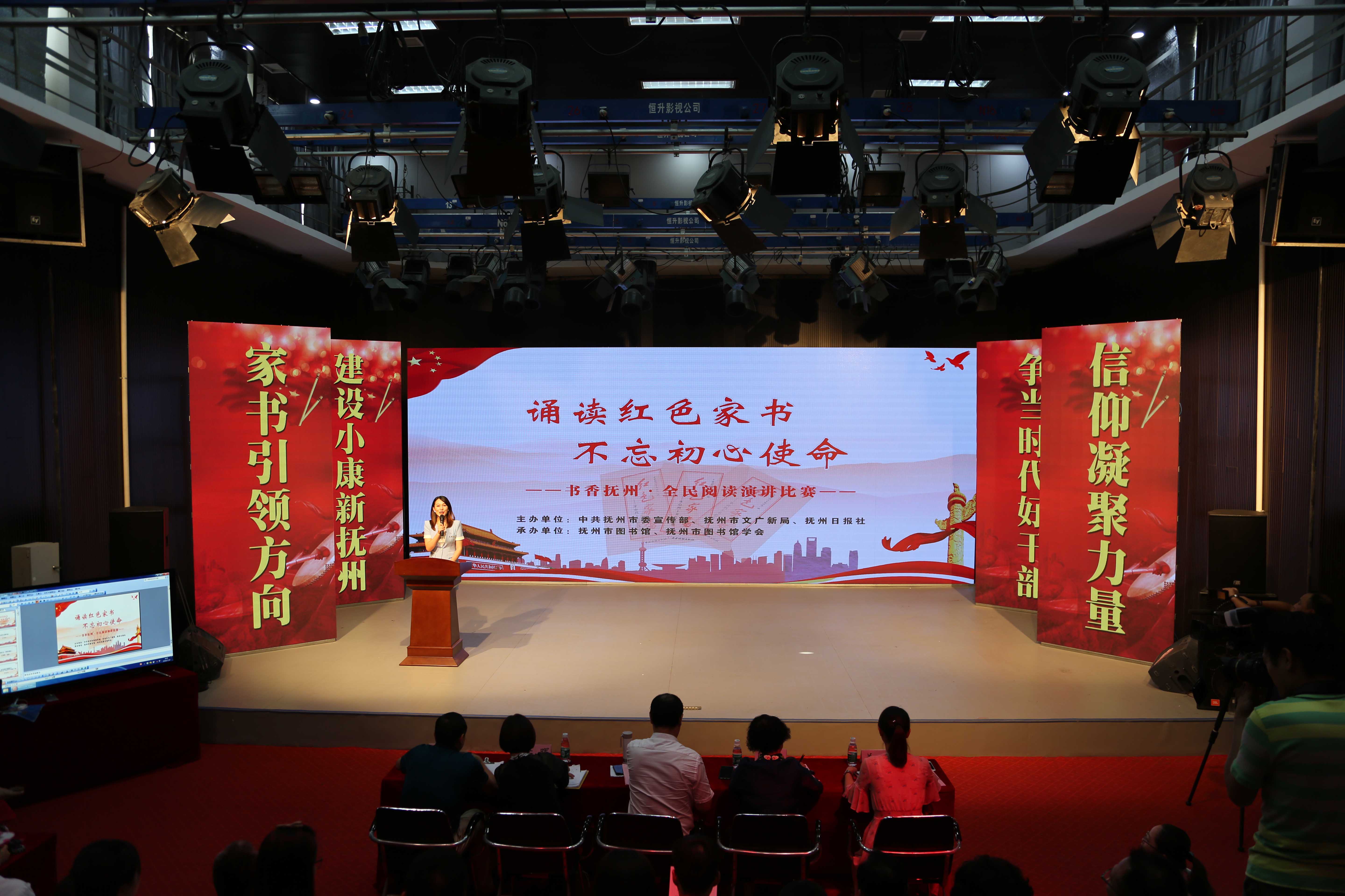 为进一步教育引导广大干部群众通过品读红色家书,传承红色基因,牢记初心使命,争当有信仰、有担当、有气节、有情怀的先锋模范,以群众喜闻乐见的形式推动市委“干部转作风、群众强素质、社会优环境”的决策部署落到实处。7月30日,由中共抚州市委宣传部、市文广新局、抚州日报社主办,抚州市图书馆、抚州市图书馆学会承办的“全民阅读·书香抚州”暨“诵读红色家书”全市演讲比赛在抚州市电视台演播厅火热开赛。中共抚州市委常委、宣传部长傅云,江西省图书馆馆长陶涛,市文广新局局长谭玉英,中共抚州市委宣传部副部长陈勇,抚州日报社总编辑何建江,市文广新局副局长花宜抚等相关领导嘉宾出席了本次比赛。