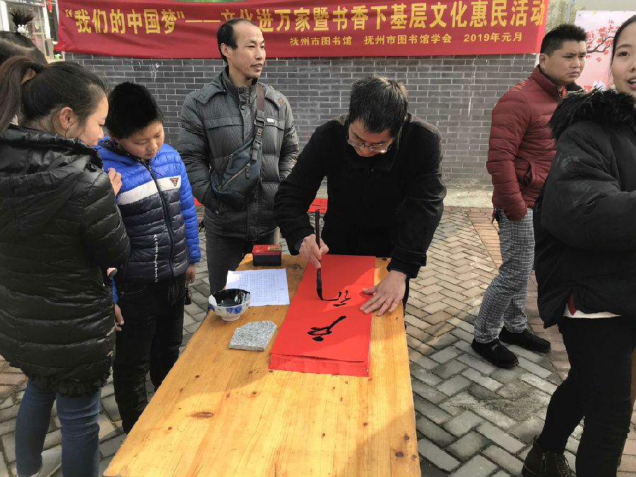 为丰富城乡基层群众文化生活,营造喜庆祥和的节日文化氛围,1月22日至23日,由市文广新局主办,市图书馆等单位承办的“我们的中国梦”——文化进万家活动分别在东临新区湖南乡灵谷峰村、岗上积镇东源村,东乡区王桥镇菱塘村、小璜镇洋湖村举行,共送出春联1000余副,送出图书1251册、农科信息500余份。此次集中下乡“送戏、送书、送春联”到村民家门口,将浓浓的年味带到了乡亲们的身边,满满的新春祝福让村民们喜上眉梢。