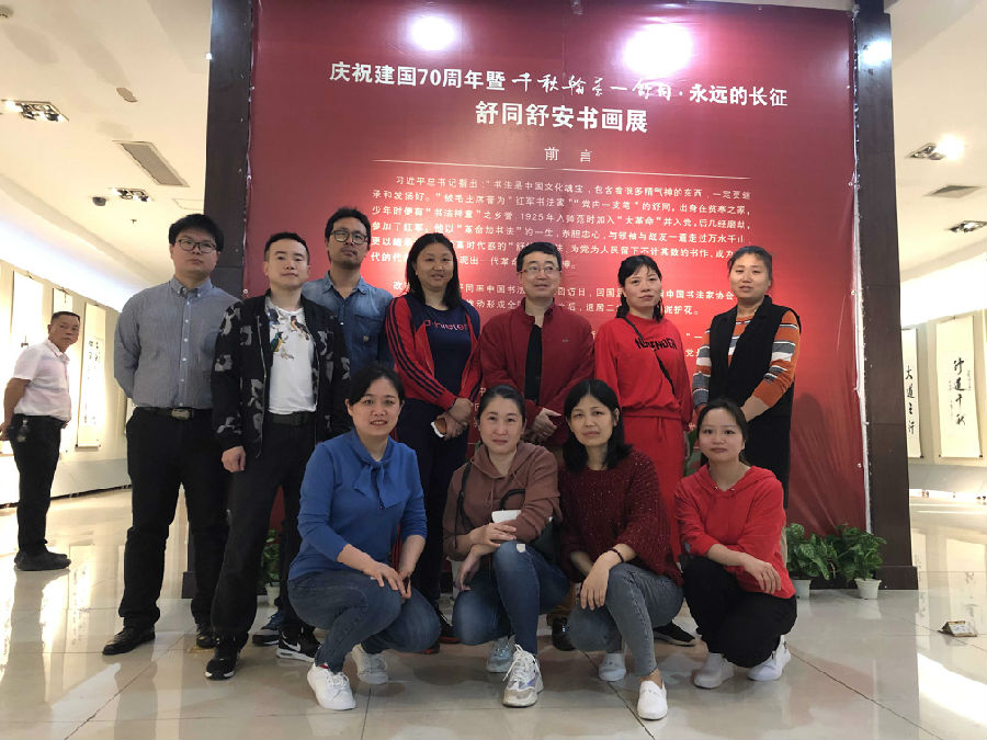 4月9日上午,庆祝建国70周年暨“千秋翰墨一舒同·永远的长征”舒同舒安书画展抚州巡展在抚州市博物馆举行,抚州市图书馆全体馆员观看了此次展览。