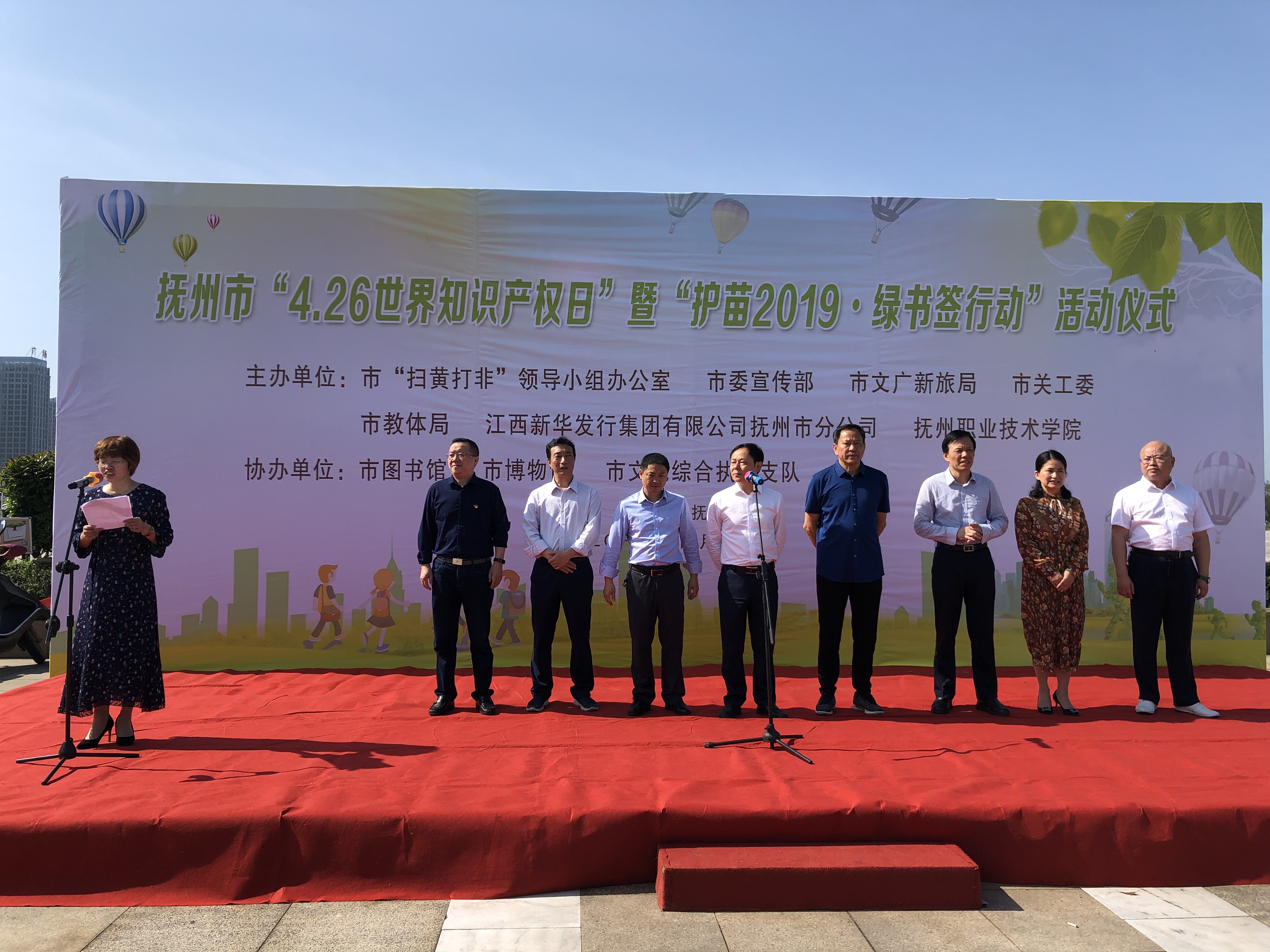 4月26日上午,由抚州市“扫黄打非”领导小组办公室、市委宣传部、市文广新旅局、江西新华发行集团抚州市分公司等单位主办的抚州市“4.26世界知识产权日”暨“护苗2019·绿书签”行动活动仪式在抚州市名人雕塑园举行抚州市图书馆和抚州市实验学校、抚州职业技术学院师生及社会各界人士参加了此次活动。