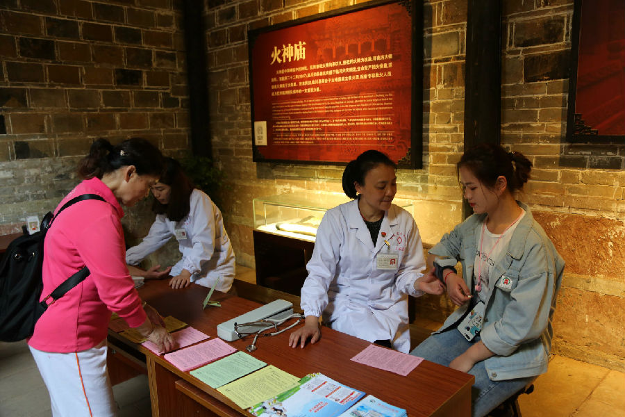 5月11日,由文昌里历史文化街区管委会、市中医协会、市图书馆共同举办的“医道文化——健康养生系列体验公益活动”在文昌里历史文化街区拉开帷幕。中医养生讲座、健身体操表演、名医义诊等活动,受到现场市民的欢迎。市人大常委会副主任余建平看望了参加活动的工作人员。