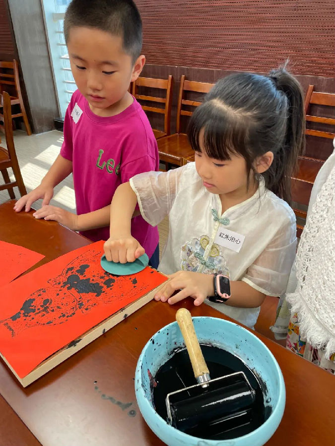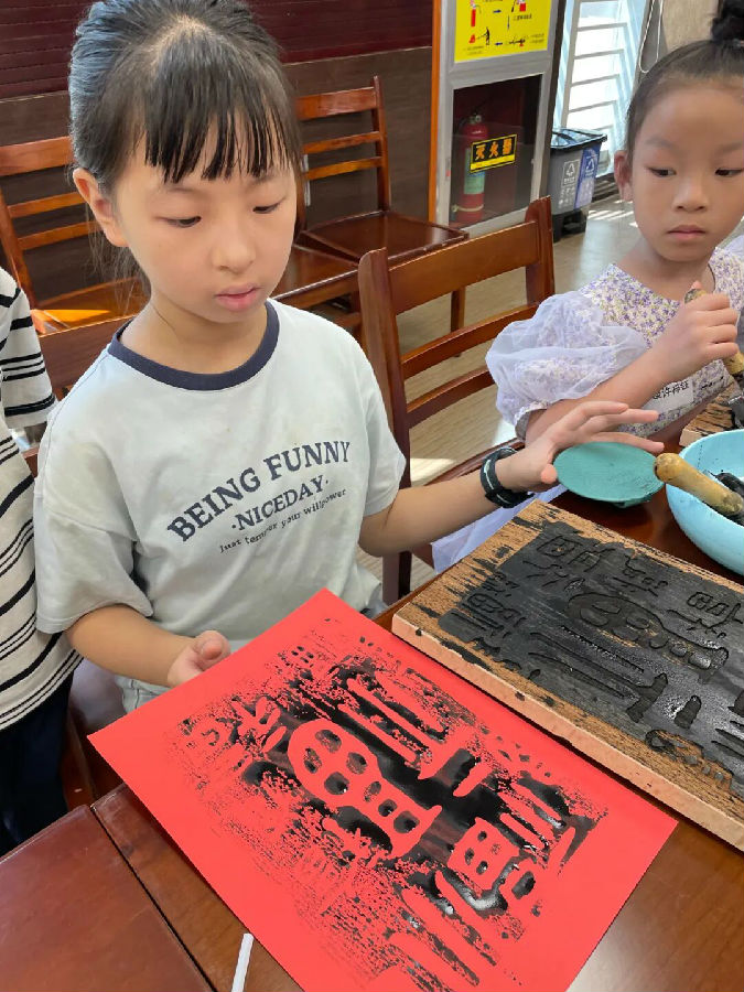 轮到自己动手时,孩子们瞬间切换成认真“小工匠”:有的小心翼翼地刷墨,有的专注地调整纸张位置,有的跟着老师的节奏慢慢捶拓。当一幅幅生动的图案从石碑上“跃” 到纸上,孩子们的脸上都绽放出惊喜的笑容。“这是我亲手做的!”他们小心翼翼地捧着自己的拓印作品,仿佛捧着一份沉甸甸的文化礼物,这份独特的纪念,也让千年非遗技艺在孩子们心中种下了传承的种子。
