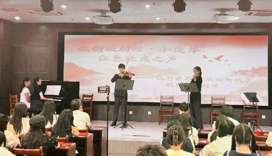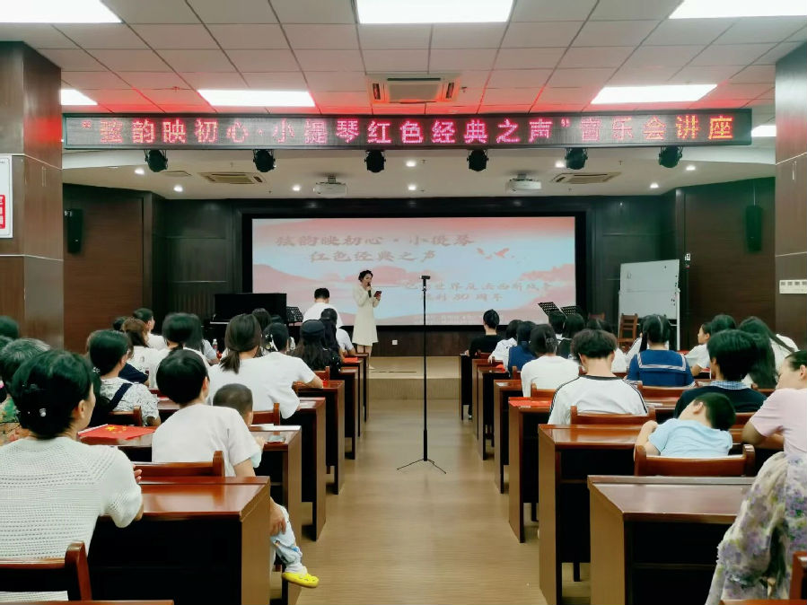 为纪念世界反法西斯战争胜利80周年,2025年10月12日,由抚州市文化广电旅游局主办,抚州市图书馆、抚州市音协民族音乐委员会承办的“弦韵映初心·小提琴红色经典之声”音乐会讲座活动在市图书馆三楼报告厅成功举办。红色主题系列活动通过绘本分享、音乐讲座、作品演奏与互动合唱等多元形式,为广大市民读者打造了一场跨越时空的红色文化体验。