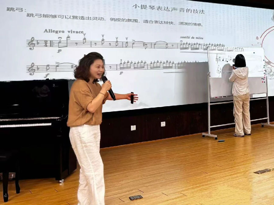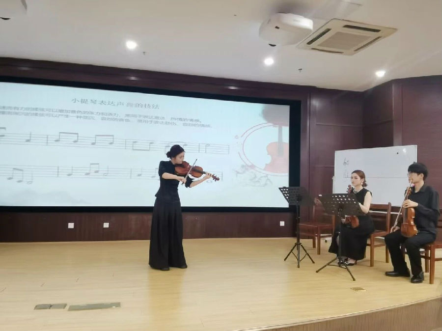 讲座特邀南昌大学音乐系小提琴教师徐灵老师担任主讲。徐老师深入讲解了红色音乐作品的历史背景与艺术特色,以音乐互动的形式引导听众在旋律中重温那段峥嵘岁月、感受其中蕴含的坚定信仰与革命乐观主义精神。