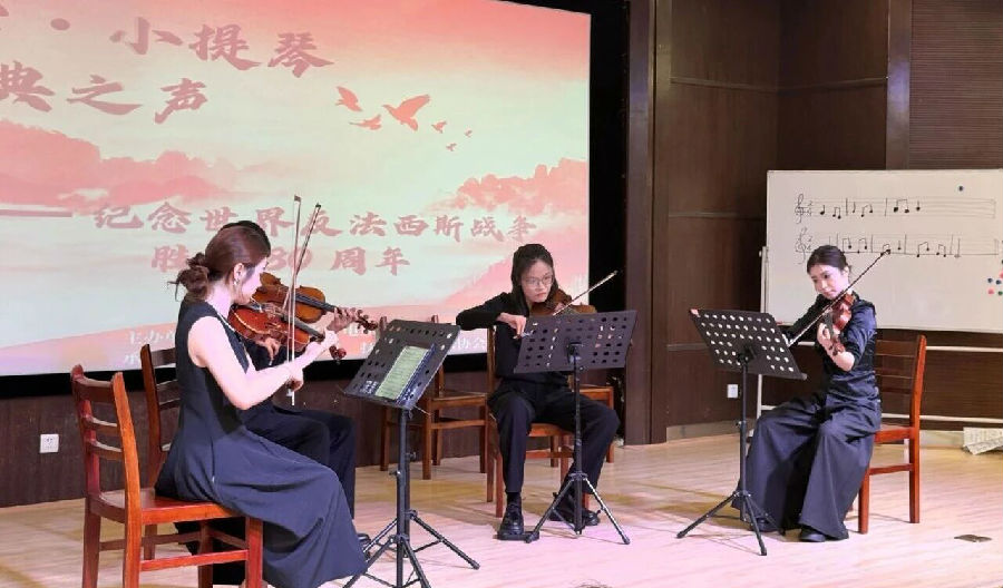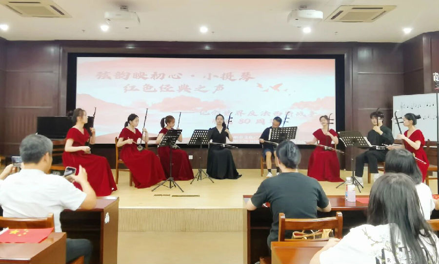 在作品演奏环节中,二胡曲目《斑鸠调》让听众感受到了江西民歌的底蕴。接着,由多位专业演奏者组成小提琴重奏小组演绎了《游击战歌》《红星照我去战斗》《唱支山歌给党听》等经典曲目。演奏者之间配合默契,音色层次丰富,生动展现出小提琴艺术的独特表现力,将红色经典中蕴含的信仰力量与情感厚度,通过旋律传递至每一位听众心中,为现场观众带来了一场震撼的音乐盛宴。