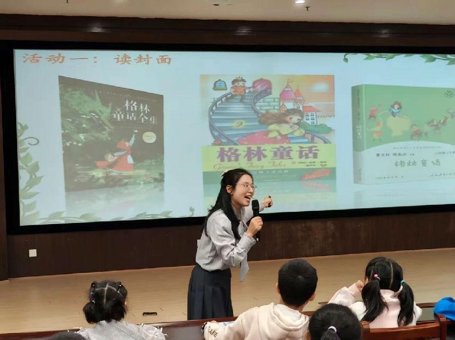 官老师适时播放了一段“数字人格林兄弟”的视频介绍,孩子们听得入神。当了解到这些故事并非原创,而是格林兄弟从民间收集整理而来时,不少孩子露出了惊讶的表情。“原来,这些故事是从老百姓口中流传下来的呀!”