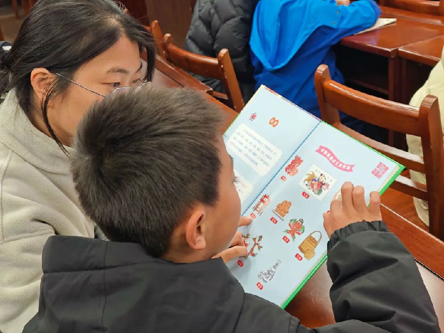 活动在亲子家庭的欢声笑语中拉开序幕。手持特色标牌的合影定格了期待的笑容,随后各组家庭在屏幕提示下迅速投入“寻书挑战”。限定20分钟内,大小读者默契配合,穿梭于书架之间,精准找寻与主题相关的书籍——有的聚焦剪纸艺术,有的寻觅冬日诗意,还有的捧回了关于雪孩子的童话。这场小小的探险不仅考验着家庭的协作效率,更让借书、选书的过程本身成为一次生动的阅读引导。
