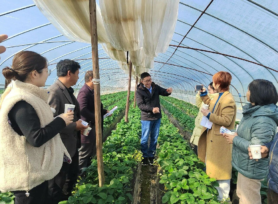 “纸上得来终觉浅,绝知此事要躬行。”理论学习结束后,大家移步至村里的草莓种植大棚,进行现场教学。