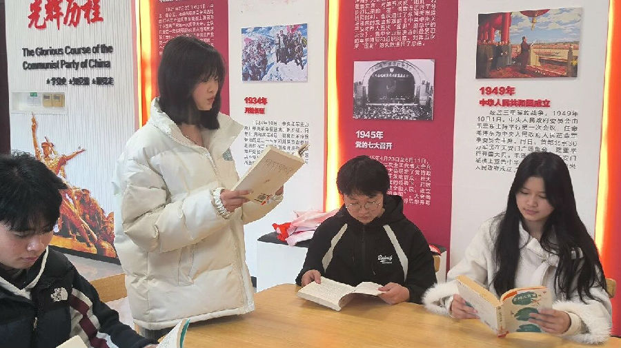 同一时间,四楼红色图书室内书香氤氲。“庆元旦”阅读悦好读书会上,读者们围坐分享诵读诗词如《元日》《守岁》等,在"爆竹声中一岁除"的韵律里感受千年传承的节日文化,于"明年岂无年,心事恐蹉跎"的词句间汲取奋进力量。